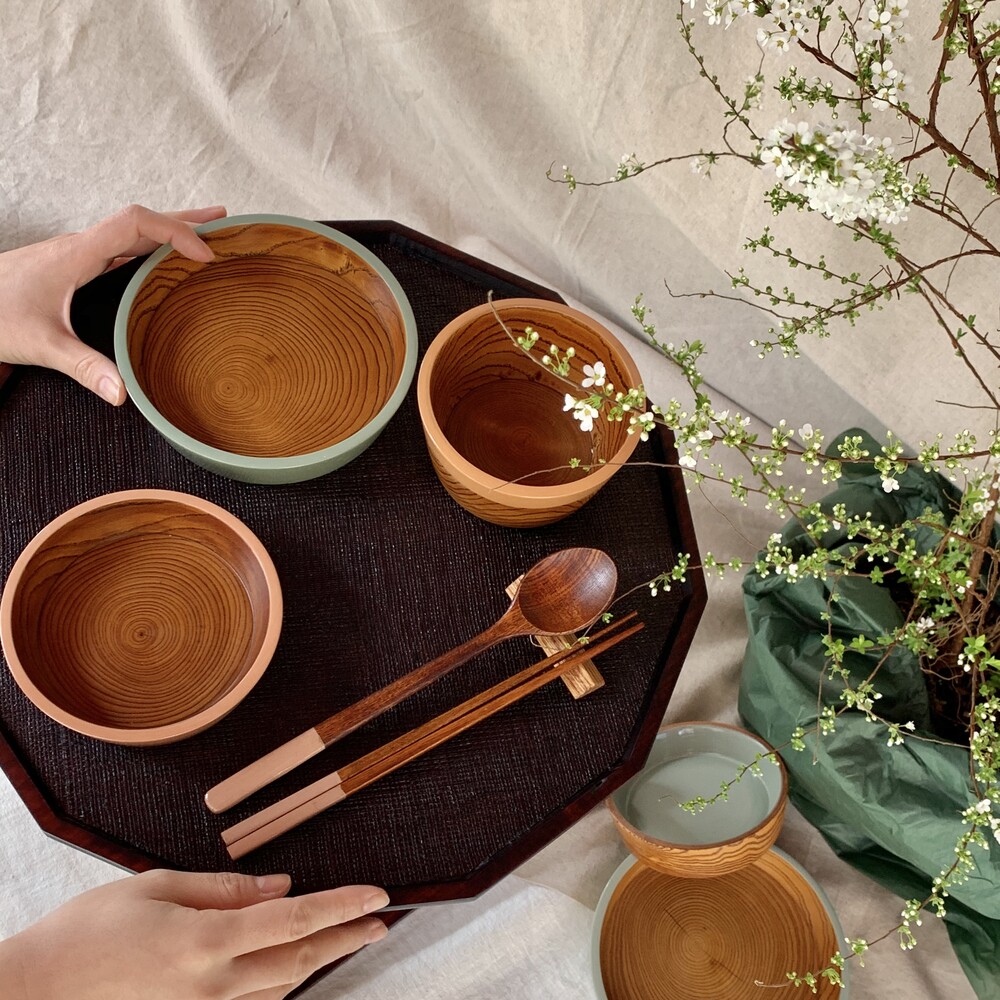 앤드바움의 삼베소반은 천연 삼베를 찹쌀풀과 옻칠을 섞어 접착하는 방식으로 제작합니다.